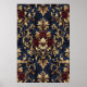 Njut av det här fantastiska Baroque-inspirerade blommönstret. Blommor från guld och ogenomträngliga, öppna, gyllene snurrar upp sig med dramatisk elegans mot en djup mörk blått bakgrund, accentuerade med svarta riker som tillför djup och kontrast. Den här designen fångar upp den stora och lyxiga konsten i Baroque-eran, och skapar en känsla av rörelse och slumrande detaljer. Perfekt för att skapar ett djärvt påstående i hemsdecor, textilier, tillbehör eller projekt som kräver ett inslag av historisk opulens och slående skönhet.