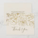 Den här guldfärgade blommigten kräm och guld tackkortet är perfekt för ett elegant bröllop. Den moderna boho-konstruktionen har en viskartad arrangemang av blommor, löv och botaniska ämnen från Faux-guld på en gräddbakgrund. Anpassa baksidan av platta kort med namn och ett tackmeddelande. Du kan också lämna tackmeddelandemallsavsnittet tomt om du vill att skrivan ska förses med en tankfull personlig på varje kort när de har anlänt. Dessa kort kan användas för en bröllop, möhippa eller vilken speciell händelse som helst. Obs! Den här designen har inte äkta guld-folie. Det är en grafik av hög kvalitet som framställs som guld-folie.