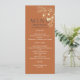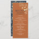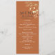 Bohemiskt, modernt, elegant, rustiskt terracotta och marint blått bröllopsprogram, med sofistikerat faux-guld-gyldat manusskript för blommigt snöre och trendig.
