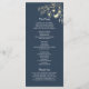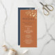 Bohemskt, modernt, elegant, lyxmarint bröllopsprogram och terracotta, med guld gyldad blommigt snöre och trendig kalligrafi.