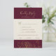 Den här guldfärgade blommigten burgundy och menyvalet guld är OSA kort för en elegant bröllop. Den moderna boho-konstruktionen har en viskartad arrangemang av blommor, löv och botaniska ämnen från Faux-guld på en burgundisk bakgrund. Svarskortet i bröllop frågar gästerna vilken måltid de vill ha på mottagningen. Obs! Den här designen har inte äkta guld-folie. Det är en grafik av hög kvalitet som framställs som guld-folie.