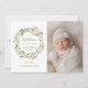 Ett prisvärt anpassningsbar tryckte födelseattentat från baby med en vattenfärg, botanisk blommigt och andedräkt i söt grönt med vita blommor. Anpassa designen med baby namn, födelsedags- och födelsestatus och lägg till dina nyfödda foton. Använda designen verktyg om du vill välja valfri bakgrund färg, lägga till fler foton, ändra typsnitt och färger om du vill skapa en unik tillkännagivande för födelse av ett slags foto.