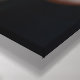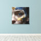Close-up of a woman's face with cracked, dark blue skin mended with gold leaf.