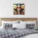A woman with a bob haircut wears gold Art Deco-inspired sunglasses and a matching headpiece. She has red lipstick and gold embroidered clothing.