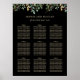 Det här vackra sätesschemat i helgdag har en elegant botaniskt gräns längst upp med faux guld löv, julgrey och röda hollbär på modern svart bakgrund. Perfekt för elegantens vinterbröllop.