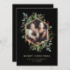 Det här vackra julkortet har ett eget familjefoto, omgivet av ett faux guld-geometriskt ram med matchande guld-löv, julgrey och röda hullbär på en modern svart bakgrund. Eleganten säger "God jul", men du kan ändra detta till ditt eget glad helg hälsning.