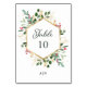 Dessa vackra bordsnummer i bröllop har ett faux-guld-geometriskt ram med matchande löv i guld, julgrå och röda hollbär på en skarp vit bakgrund. Perfekt för elegantens vinterbröllop.
