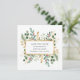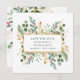 Denna häpnadsväckande jul i bröllop spara datum har helgdag grönt och löv med faux guld löv och röda hollbär, och ett centrum i guld ram på modern vit bakgrund. Ditt personliga foto går på baksidan, omgivet av ett annat guld-geometriskt ram med vintergrön.