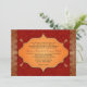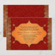 Faux golden kant gör ett gyldat gräns för den indisk inspirerade bröllopsinbjudan. Bakgrunden är en djup röd bakgrund med en subtil övertryckning av mönster allt för att förbättra en ram som innehåller skräddarsydd bröllop-text. Ram omges av fyra små guldfärgade paisleydekorationer. Du kan skriva ut extra på motsatt sida mot den röda bakgrunden eller ta bort texten om Du vill lämna området tomt. Tillgängligt med matchande produkter.