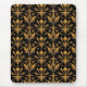 Den här produkten visar en sömlös upprepning av mönster med en lyxig och regal estetik. Konstruktionen har en komplicerad blommigt och motiv för rulla i guld som är symmetriskt placerade på en djup svart bakgrund, vilket framkallar den elegans som den klassiska Baroque och Rococo stilar har. I det dekorativa inslag finns bl.a. stiliserade acanthus löv, krämande blomningar och symmetriska blommigtar som utmärker en känsla av förfining och storhet. Övertoningseffekten i guld, som detaljerar, lägger till djup, skapar mönster som rik och sofistikerad.
