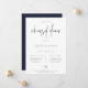 Elegant vattenfärgsgad måne-fas, repetitionsmiddagsinbjudan. Chic och modern typografi. Kortets baksida är starkt samordnande av marinblått färg.