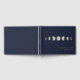 Elegant vattenfärgsgad måne-faser, modern bröllop gäst bok. Bok har malltext linjer för namn, händelsens titel och datum. färg i bakgrunden visas i marint blått.