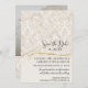 "Gilded Rulla Damask Ivory Guld Spara datumet med fotografi." Ditt fotografi, namn och bröllop-datum visas på motsatt sida så att dina gäster kan behålla och uppskatta ditt meddelande för alltid. Elegant, neutralt, elfenben och beige klassiskt löv och blommigt-dammmönster som målats av en internationellt licensierad konstnär och formgivare, Audrey Jeanne Roberts. Upphovsrätt.