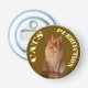 Bild är en fluffy-katt i sitta i en guld-myntdesign med ord katter-skydd