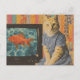 Ginger Cat With Goldfish on TV Retro Collage Vykort