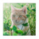 Ginger Cat with Green Eyes in Grass Kakelplatta