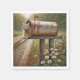 En ginger-kattlåda bekvämt inuti en rostig brevlåda omgiven av daisy vilda blommor på en landsväg