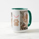 The best therapy for your everyday morning, is a kitten. Make a keepsake with his photo. Two photos of the kitten, humor red text saying, "the best therapist", and the cat's paw, all on a pale grey background, to contrast with the green hunter inside color of mug.