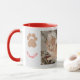 The best therapy for your everyday morning, is a kitten. Make a keepsake with his photo. Two photos of the kitten, humor red text saying, "the best therapist", and the cat's paw, all on a pale grey background, to contrast with the inside color of mug.