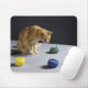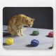 Ginger tabby katt sitta på bord tittar vid ull bollar | Michael Blann | Tillgångs-ID: sb10069719m-001