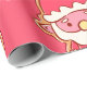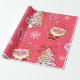 A sweet and festive artwork featuring charming gingerbread style Santa faces, cheerful snowmen, decorated Christmas tree cookies, peppermint candies, ornaments, and delicate snowflakes set against a bright pink background. The playful mix of holiday treats and whimsical details creates a warm, joyful, and delightfully cheerful Christmas vibe.