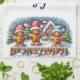 Celebrate the sweetness of the season with this charming winter scene featuring a cheerful gingerbread family dressed in festive hats, standing joyfully in the snow before a cozy cottage. Colorful buttons, candy-like decorations, and whimsical icing details bring each character to life, while gently falling snow and twinkling pine trees create a magical forest backdrop. The warm lights of the gingerbread house and a rustic wooden fence lined with vibrant ornaments enhance the nostalgic charm, evoking memories of classic holiday traditions. Ideal for holiday lovers who adore playful, storybook-style designs, this heartwarming composition blends folk whimsy and festive flair, perfect for seasonal displays and winter decor. AI generated artwork.