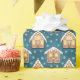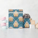A beautiful pattern of gingerbread house illustrations and snowflakes on a dark blue wintery background. Perfect to add a festive touch to your gifts this Christmas!