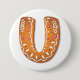 Pin some holiday cheer to your jacket, bag, or hat with this gingerbread letter U button. This small but festive accessory features a detailed cookie monogram with pink and white frosting accents. It is a great budget-friendly gift, party favor, or stocking stuffer for the Christmas season. Use it to show off your initial in a fun, edible-looking style that captures the warmth and joy of traditional holiday gingerbread treats.