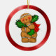 Christmas Ornament is shown in a round shape with a cute holiday gingerbread man print.