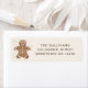 This gingerbread return address label features watercolor cookies, gold foliage, and stylish script typography. Easily customizable. Original Watercolor © Michele Davies.