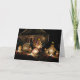 Fotografi av en gingerbreadmaninställning och en julhälsning består av detta helgdagkort
