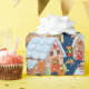 En roligt och en färgstark by i brödbrödhus i snö (blå bakgrund)