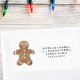 Den här returadressetiketten för gipskaka innehåller en vattenfärgscookie för pepparkaksgubbe. Enkelt anpassade. Ursprunglig vattenfärg © Michele Davies.