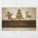 Elegant och utsökt julillustration: hjort av dekorerat gingerbröd Julgran, pepparkaksgubbe och gingerbröd med gyllene stjärnor på en brunt baksida.