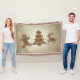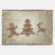 Elegant och utsökt julillustration: hjort av dekorerat gingerbröd Julgran, pepparkaksgubbe och gingerbröd med gyllene stjärnor på en brunt baksida.