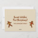 "Mitt ben ontr" - "Vad?" Lustiga pepparkaksgubbar i parodi, spoof, till kaninkanterna som säger "Min rumpa ontr". På kortets insida står det "Sweet Önskemål for jul" som kan ändras eller lämnas som det är.