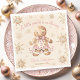 Julbabydusch Napkins med en förtjusande pepparkaksgubbe flicka i rosa och beige, gingerbakkakor och faux golden snöflingor. Anpassa texten enkelt. - Kate Eden Art