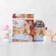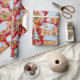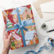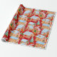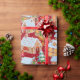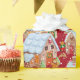 En roligt och en färgstark by i brödbrödhus i snö (röd bakgrund)