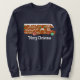 Du kan lämna "God jul"-meddelandet eller anpassa texten på den här tröjan med din egen slogan. Den vita texten visas under en illustration av ett gingerbröd RV. Den här festkakan är dekorerad med vit isbildning och rött och grönt godis.