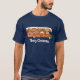 Du kan lämna "God jul"-meddelandet eller anpassa texten på den här t-shirt med din egen slogan. Den vita texten visas under en illustration av ett gingerbröd RV. Den här festkakan är dekorerad med vit isbildning och rött och grönt godis.