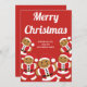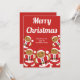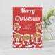 Ett julkort med leende, gingerkakor i Santa kostym. Skicka julglädje till dina kära med det här söta, Julafton-kokkortet. Gingerbröd julkort Helgdag 2002 | ©Melissa Patton - Artist/Illustrator