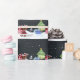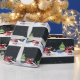 En söt gingerbrödflicka, som håller en rosa inlindad present, som går på snö mot en grönt Julgran med blåinlindat presenter vid dess bas. Fallande snö mot ett nattskylt himlar och ett nordpolskt tecken. Gingerbrödsflicka vid Whispys D'zines. Design efter Iggys_World