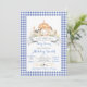 Söt blå Gingham bondgård baby shower inbjudan