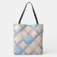 A seamless background featuring pastel gingham patterns and floral prints in a cathedral window quilt design