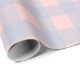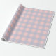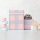 A pastel gingham pattern in pink and lavender shades with a subtle wavy grid effect. Tiny white speckles add a soft textured detail across the design.