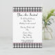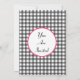 En enkel inbjudan med en kolgrå gingham-design överst och längst ner på framsidan. Rosa trim och svart band fet font. Anpassa med detaljer om ditt evenemang. Den motsatta sidan har en solid design med en cirkelform i mitten som ramar in texten.