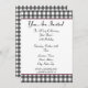En enkel inbjudan med en kolgrå gingham-design överst och nederst på framsidan. Rosa trim och svart band fet stil. Anpassa med detaljer om ditt evenemang. Den motsatta sidan har en solid design med en cirkelform i mitten, som ramar in texten.