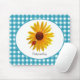 En gullig blåttginghammousepad med en ljus och cheery gul solros med en gullig lite röd prickig nyckelpigasitta på dess petals. Personifiera, genom att tillfoga ditt namn till denna landstildesign sure för att sätta dig i en lycklig sommartidpicknickmood!