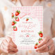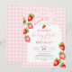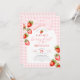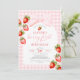 Gingham Jordgubbscoquette Första Födelsedag Inbjudningar