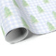 Hand målade lite Julgranar på en baby blue gingham-bakgrund, det ger en vacker årtusenårig julomslutning pappra stil!